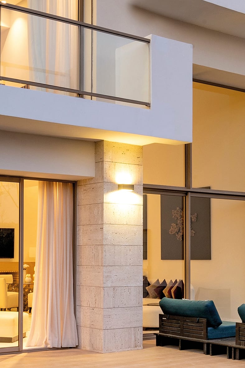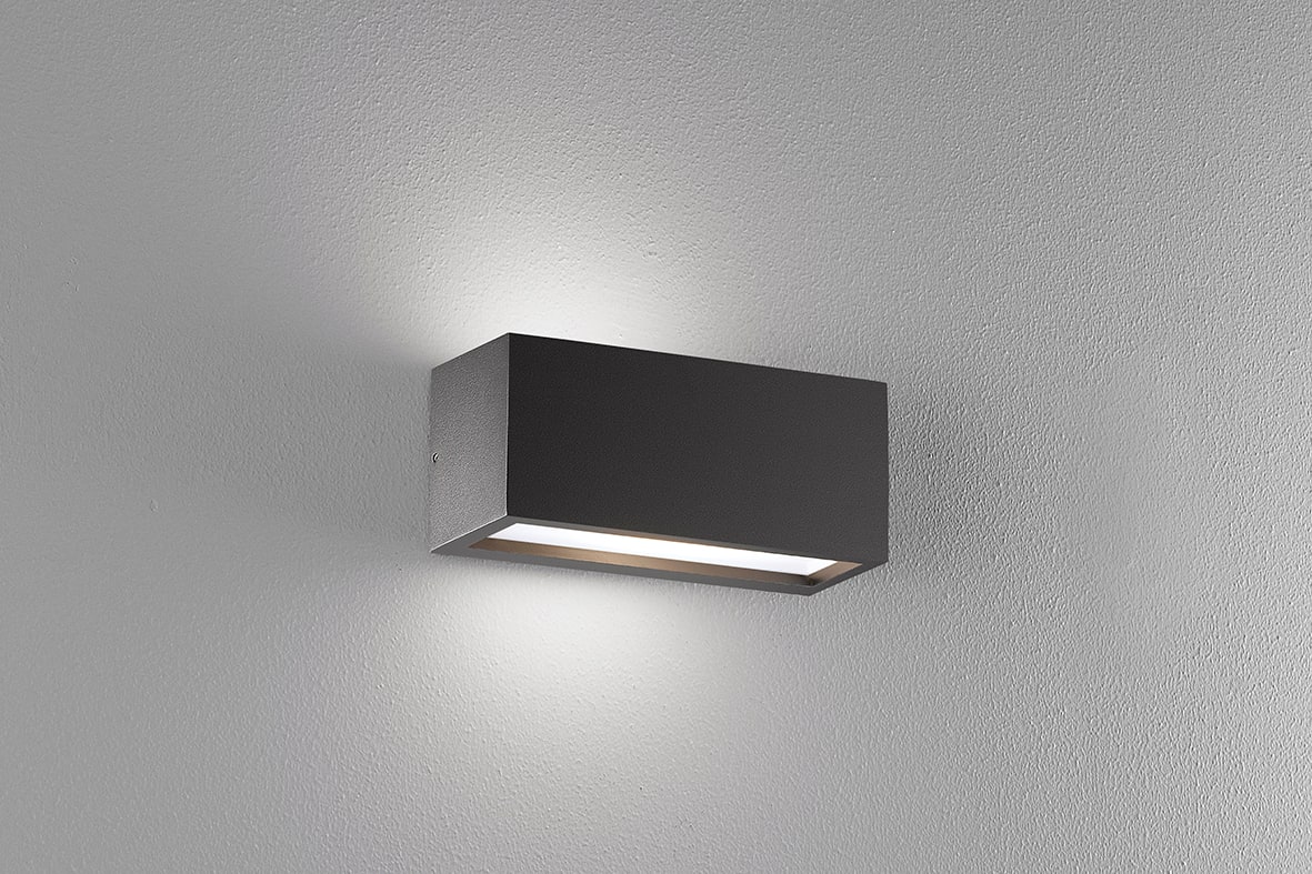 Apparecchio biemissione a parete per esterno (IP55) a LED o con attacco E27 che consente di montarelampadina LED. Struttura in pressofusione di alluminio con diffusore in policarbonato, verniciata con polveri poliestere a elevata resistenza ai raggi ultravioletti e alla corrosione. Alimentatore LEDintegrato. Disponibile in quattro finiture (bianco, grigio, antracite e marrone) e nella versione LED in due temperature colore (3000K e 4000K). Disponibili giunti certificati IP68 per la realizzazine delle connessioni elettriche, sicure, durevolie c on barriera anticondensa.