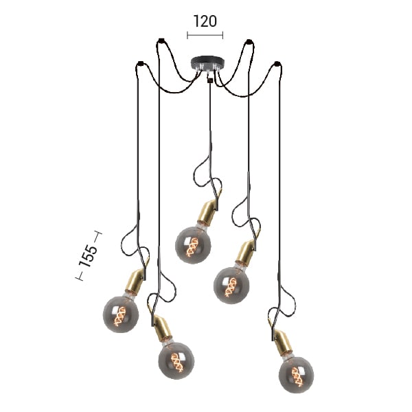 ROSSINI - RSSKAR005NOTS SOSPENSIONE 5 ELEMENTI NERA/OTTONE SATIN - KAR005NOTS