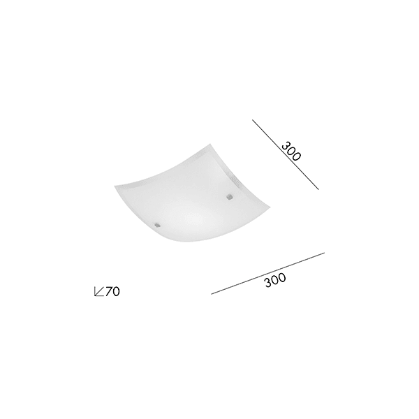 Lampada da parete e a soffitto in vetro curvato bi anco satinato. Struttura e particolari in metallocromato. Attacco E27 che consente di montare lampa dina LED.
