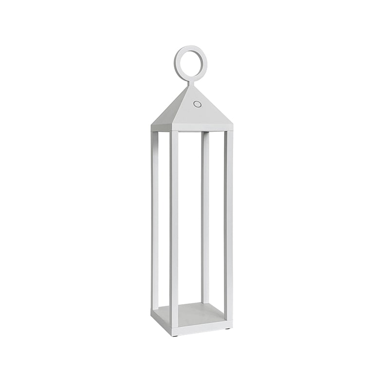 Lampada da tavolo a LED (2700K), portatile e ricaricabile, ideale per illuminare terrazze e giardini, ma perché no, anche per rallegrare il tuo pic-nic al parco. Una lampada senza fili, che ti segue ovunque tu voglia andare. Struttura in pressofusione di alluminio verniciato con pretrattamento per uso da esterno (IP54). Accensione con interruttore touch dimmer e ricarica a contatto tramite l'apposita base, durata della batteria 12 ore. Disponibile in tre colori (bianco, antracite e corten) e in tre altezze. Possibilità di installazione a sospensione tramite cavo e corda in finitura ecrù (5 mt) e a parete tramite gancio da ordinare come accessorio.