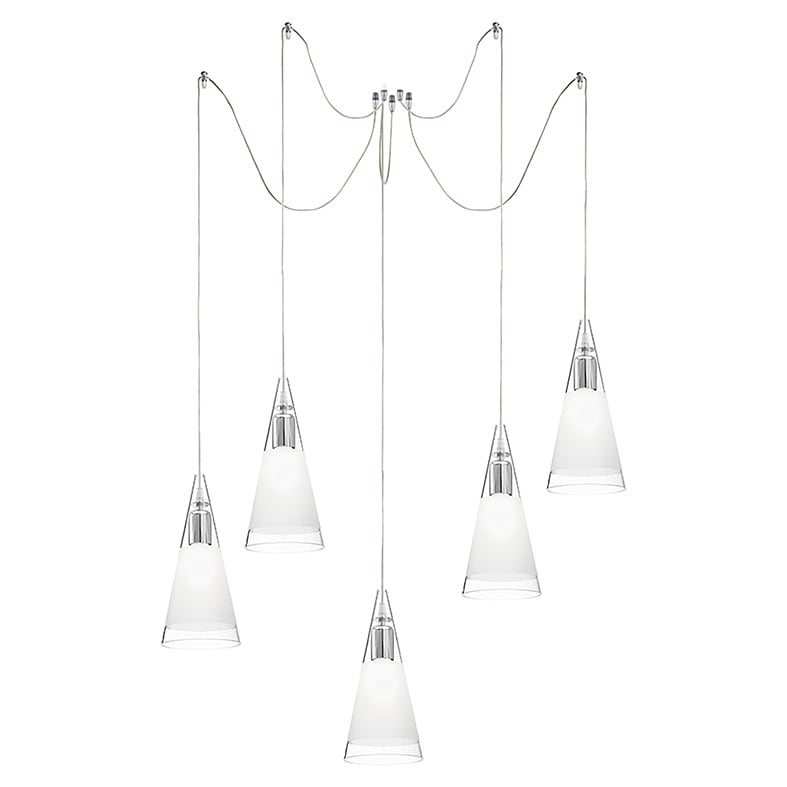 ROSSINI - RSSREN004 SOSPENSIONE 5 ELEMENTI CROMO/VETRO BIANCO SATINATO E27 IP20 - REN004