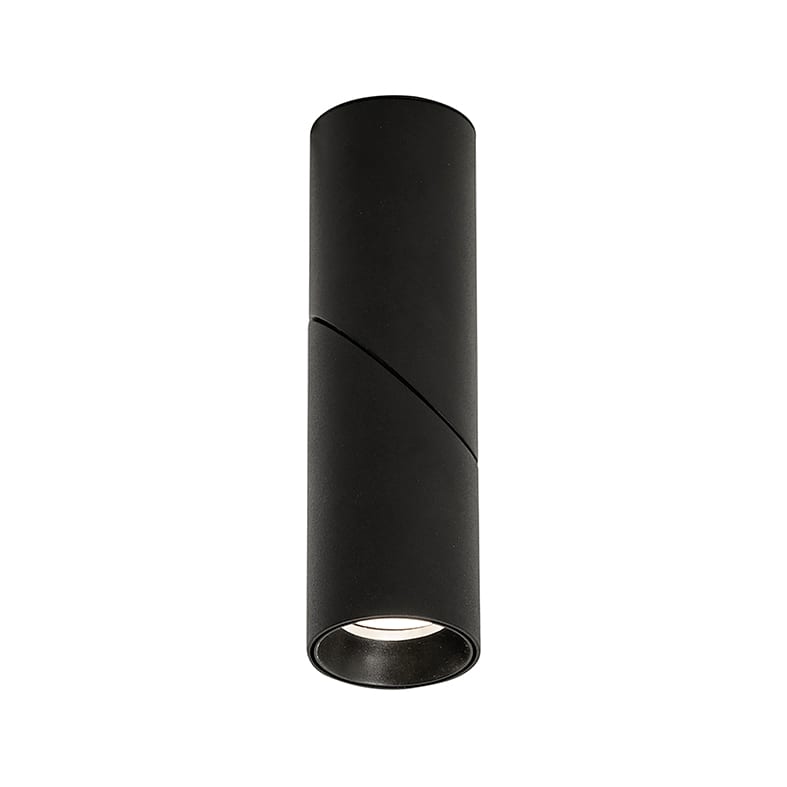 Apparecchio da soffitto con struttura in alluminio orientabile su un unico asse di 355° per direzionare il fascio di luce. Il design dello snodo centrale permette di ruotare il corpo illuminante di 90° o di mantenerlo fisso per personalizzare ulteriormente l'illuminazione. Attacco GU10 che consente di montare lampadine LED.