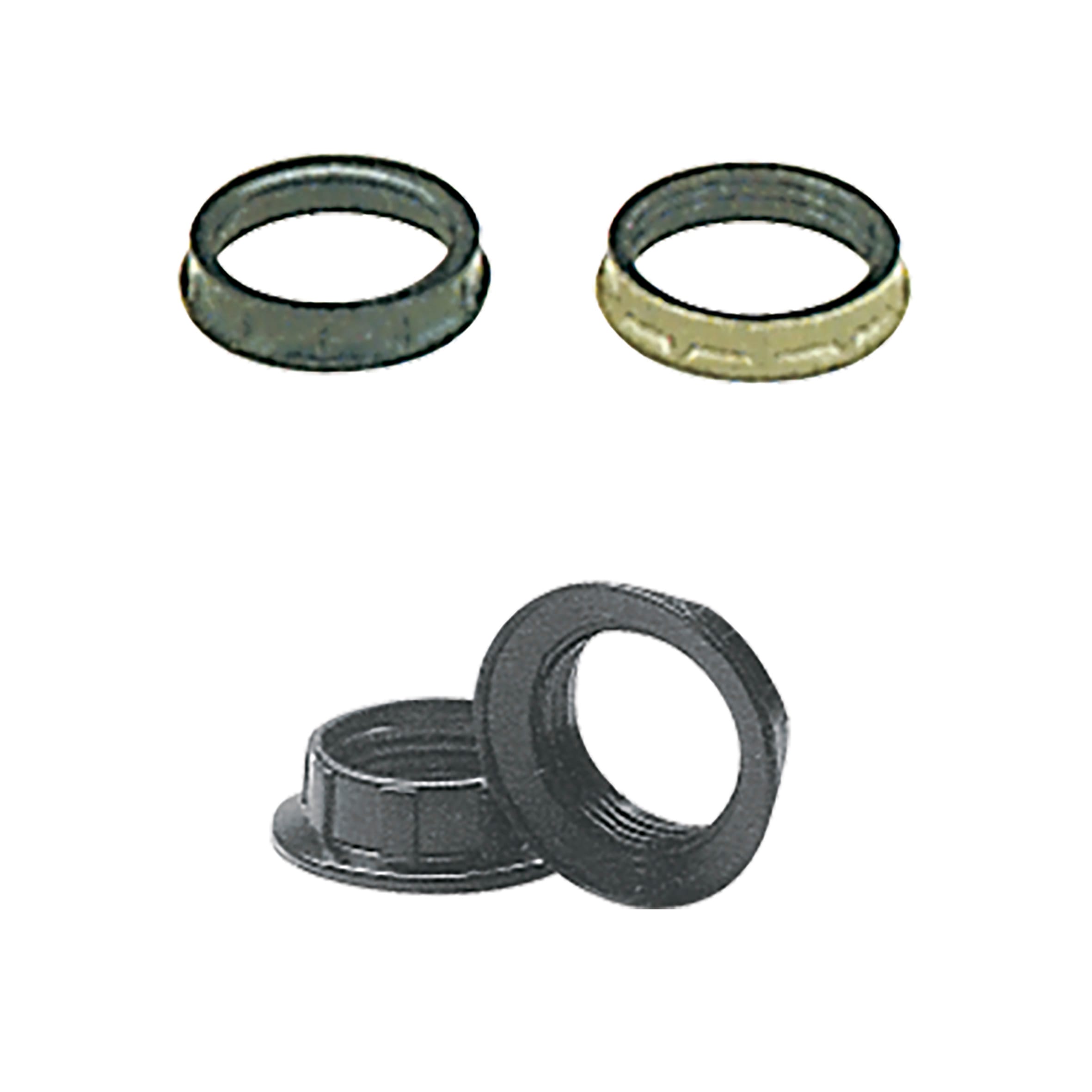 Serie di ghiere per portalampade E14 ed E27, in bachelite o metallo.