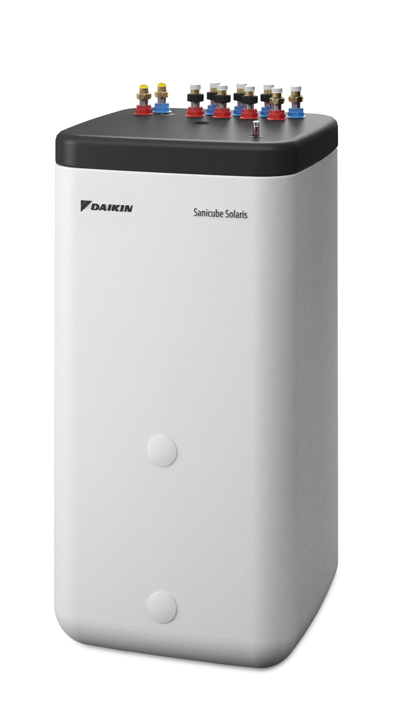 DAIKIN propone Accumulatore di calore per produzione di acqua calda sanitaria Sanicube Accumulatore d'energia ad alto rendimento da 500 litri per la produzione di acqua calda sanitaria, integrazione del riscaldamento e per funzionamento bivalente con generatore di calore supplementare. - Accumulatore di calore in plastica con scambiatori termici in tubo corrugato in acciaio inossidabile - Capienza 500 litri - Combinazione tra accumulatore di energia e scaldacqua istantaneo per la produzione di acqua calda sanitaria - Igiene dell'acqua ottimale - Opzione solare integrata per sistemi solari termici Drain-Back (DB) o in pressione - Possibilità di combinare più serbatoi di accumulo per costruire sistemi in grado di soddisfare grandi utilizzi di acqua calda