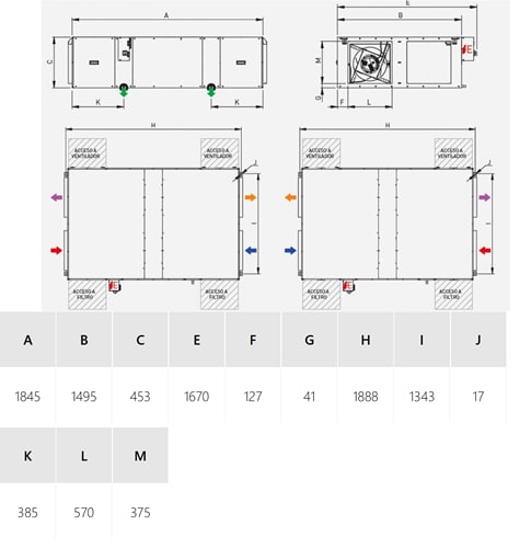 Volume d'aria a 50 Pa max. - 2470.67 m³/h
