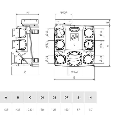 Volume d'aria a 50 Pa max. - 317.81 m³/h