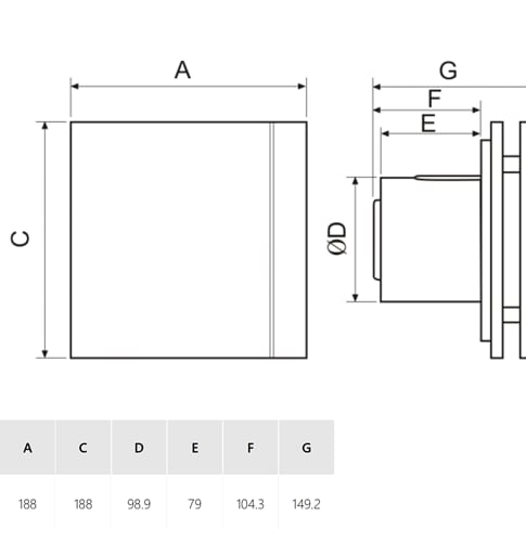 Ventilatori elicoidali di basso livello sonoro, portata a bocca libera di circa 85 m3/h, serranda antiritorno incorporata, luce pilota di funzionamento, motore 230V-50Hz con cuscinetti a sfera, montato su silent-block, IP45, Classe II. Dotati di protezione termica per lavorare fino a +40°C.