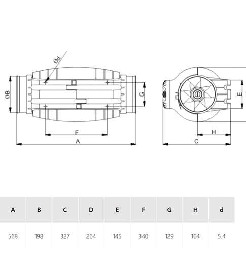Low profile mixed flow duct fan with sound absorbent insulation. Extremely quite. Manufactured in plastic material. External connection box. Speed controlable 230V-50Hz motor. Fitted with rubber gaskets on the inlet and outlet to absorb vibrations, a body that can be dismantled. Brand S&P model TD-800/200 SILENT T 3V (220-240V 50/60) N8.