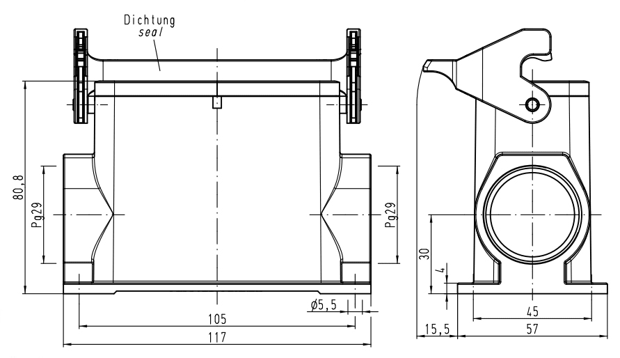 CUSTODIA FISSA 1 LEVA 16P PANNELLO 2 USCITE PG29