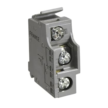 It is a single low-level auxiliary contact that provides OF remote information of the circuit breaker status. The OF contact (open/closed) indicates the position of the circuit breaker main contacts. There is one auxiliary contact model for OF, SD or SDEinformation, depending on where it is fitted in the device. This auxiliary is a common point changeover type contact with 1 normally open contact and 1 normally closed contact. The rated current is 5A and the minimum load is 1mA at 4 VDC. Utilization categories are AC12/AC13/DC12/DC14. Compact NS 630b to 3200 can be equipped with 3 OF auxiliary contacts. It complies with IEC 60947-5-1 standard.