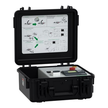 Il kit mobile Vigilohm è progettato per monitorare e identificare l'isolamento permanente predefinito sulle reti elettriche interrate / IT dall'alimentazione principale al livello di carica. Questo localizzatore di guasti mobile è costituito da un portafoglio di 7 kg contenente una batteria con autonomia di 24 ore, un localizzatore mobile predefinito, uno schermo display, un cavo di carica e connessione per le sonde dedicate e un interruttore ON/OFF. Il kit funziona in connessione con una delle tre sondedi monitoraggio dell'isolamento dedicate, IMDCP15, IMDCP50 e IMDCP100, e richiede che il segnale sia fornito da IM400 o XM300 CPI. Il kit richiede il collegamento di una di queste sonde per poter misurare e visualizzare la resistenza e la capacità della carica da monitorare. La calibrazione viene eseguita a partire dall'alimentatore predefinito e richiede 45 secondi, mentre tutte le altre misure vengono realizzate entro 20 secondi, sia che si tratti di un cavo o di un carico finale. Le tre sonde disponibili sono progettate per offrire versatilità e consentire all'utente di scegliere la soluzione più adatta per la propria rete di messa a terra IT. Il kit ha lo scopo di essere gestibile e trasportabile in varie installazioni, sia che siano composte da cavia breve o lunga distanza, sia che si tratti di installazioni di messa a terra IT semplici o complesse. Per garantire la veridicità del valore misurato, tenere presente che il kit e la sonda IMDMFLK1 richiedono che il segnale sia fornito da un CPI IM400 oXM300. Permette di monitorare la rete con una capacità massima di 20µF con un ingresso di tensione <1000 V CA/CC se non è collegato alla rete o <440 V CA/CC se collegato alla rete. La batteria fornisce 24 ore di autonomia per 7 ore di ricarica con una potenza di alimentazione ausiliaria di 24 VDC e un consumo di 4 W. Il kit di monitoraggio isolamento pesa 7 kg ed è largo 340 mm per 315 mm in altezza e 160 mm in larghezza. La temperatura di esercizio è compresa tra -20°C e 45°C e il dispositivo può tollerare fino al 95% di umidità non condensata. La temperatura di immagazzinamento è compresa tra -20°C e 60°C e il kit può sopportare un'altitudine massima di 3000 m. Il portafoglio è nero, mentre il localizzatore predefinito è grigio e visualizza il valore tramite uno schermo LCD. L'IMDMFLK1 è certificato IEC61010-1, IEC61010-2 ed EN61326, è un dispositivo di categoria III con un grado di inquinamento di 2. Per utilizzare correttamente il kit, è stato necessario rilevare in precedenza un errore permanente tramite un IM400, XM300 CPI o IFL, se presente. Il kit deve quindi essere calibrato sull'alimentatore in cui è stata rilevata l'impostazione predefinita -40sec-, quindi le alimentazioni secondarie possono essere monitorate indipendentemente -20sec-. Complessivamente, il kit Vigilohm per la localizzazione dei guasti mobile è composto da tre toroidi di misura e dal portafoglio localizzatore predefinito di isolamento. E abilitare la posizione effettiva dei guasti di isolamento indipendentemente dalla complessità del sistema di messa a terra IT. Questo kit è adattato per reti di messa a terra IT a breve o lunga distanza, complesse o semplici e consente all'utente di gestire tutte le linee di alimentazione necessarie.