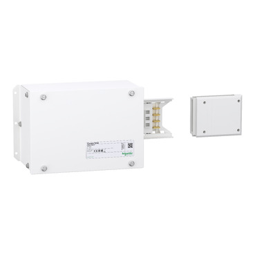 Unità di alimentazione Canalis per KNA. La tensione di esercizio nominale è da 230VAC a 500V AC. La corrente nominale d'impiego è di 160 A. Il materiale della barra dell'unità di alimentazione è alluminio con trattamento superficiale bianco RAL 9001. Montaggio sulla sbarra tramite clip sul lato sinistro o destro della stessa, collegamento tramite morsetti a occhiello. Progettato con 1 circuito abilitante. Include la chiusura d’estremità. Fornisce un grado di protezione IP55 conforme alla norma IEC 60529.IK08 conforme a IEC 62262. È conforme a IEC 60439-2 e a 61439 IEC-6.