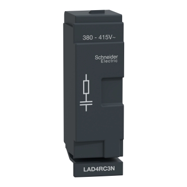 Modulo soppressore TeSys D per contattori LC1D40A-D80A e LC1DT60A-DT80A. Da utilizzare con tensione del circuito di comando a 110-240V CA, fornisce protezione RC mediante limitazione della tensione transitoria a 3 Uc max. Facile montaggio anteriore a clip, le dimensioni totali del contattore non cambiano.