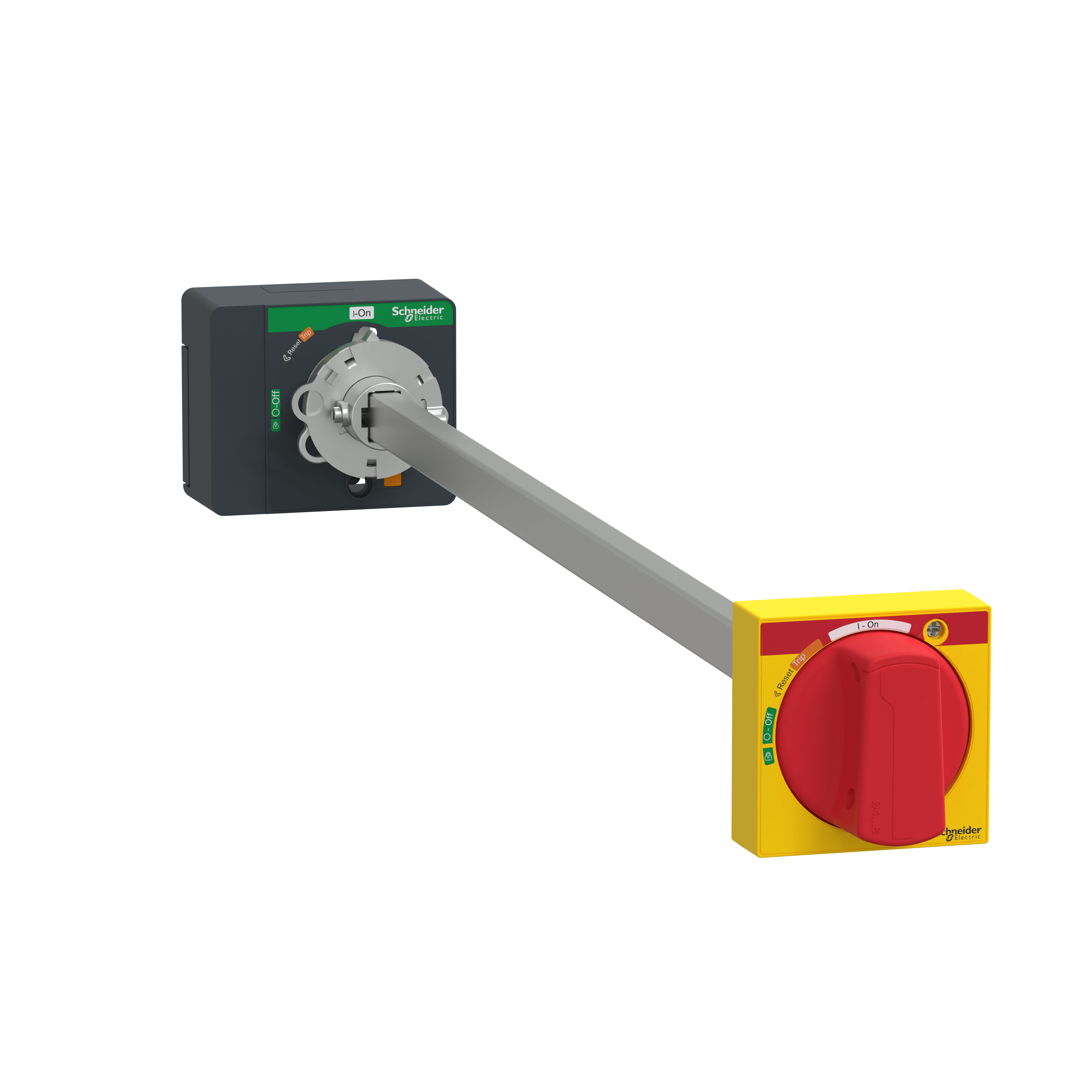 Questa manovra rotativa rinviata è un accessorio di controllo per dispositivi Compact NSXm e PowerPact B. L'interruttore installato in un quadro con questa manovra rotativa rinviata è classificato IP54 secondo la norma IEC 60529. Può essere montata sul dispositivo con un'asta di estensione fino a 600 mm e mantiene l'idoneità all'isolamento. La lunghezza dell'asta è regolabile. Questo accessorio ha una manopola rossa sulla parte anteriore gialla. I lucchetti possono essere utilizzati per bloccare la maniglia e disabilitare l'apertura della porta.