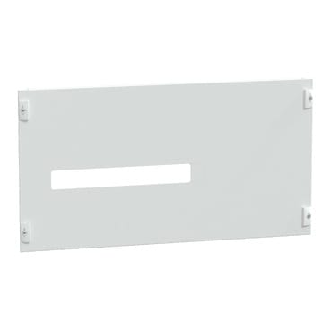 PrismaSeT G front plate for Transfer Pact 160A, 3P/4P. Type of front plate is cut-out plate. Number of device per horizontal rows is one, with vertical 8 modules. To be part of a PrismaSeT G vertrcal mounted front plate. for floor-standing enclosure - width 850 mm depth 200 mm. Front plate made with Epoxy powder coat treated sheet steel. matt/textured surface finition with white (RAL 9003). Ambient air temperature for operation is from 25 to 55 °C conforming to IEC 61439-1/ IEC 61439-2.