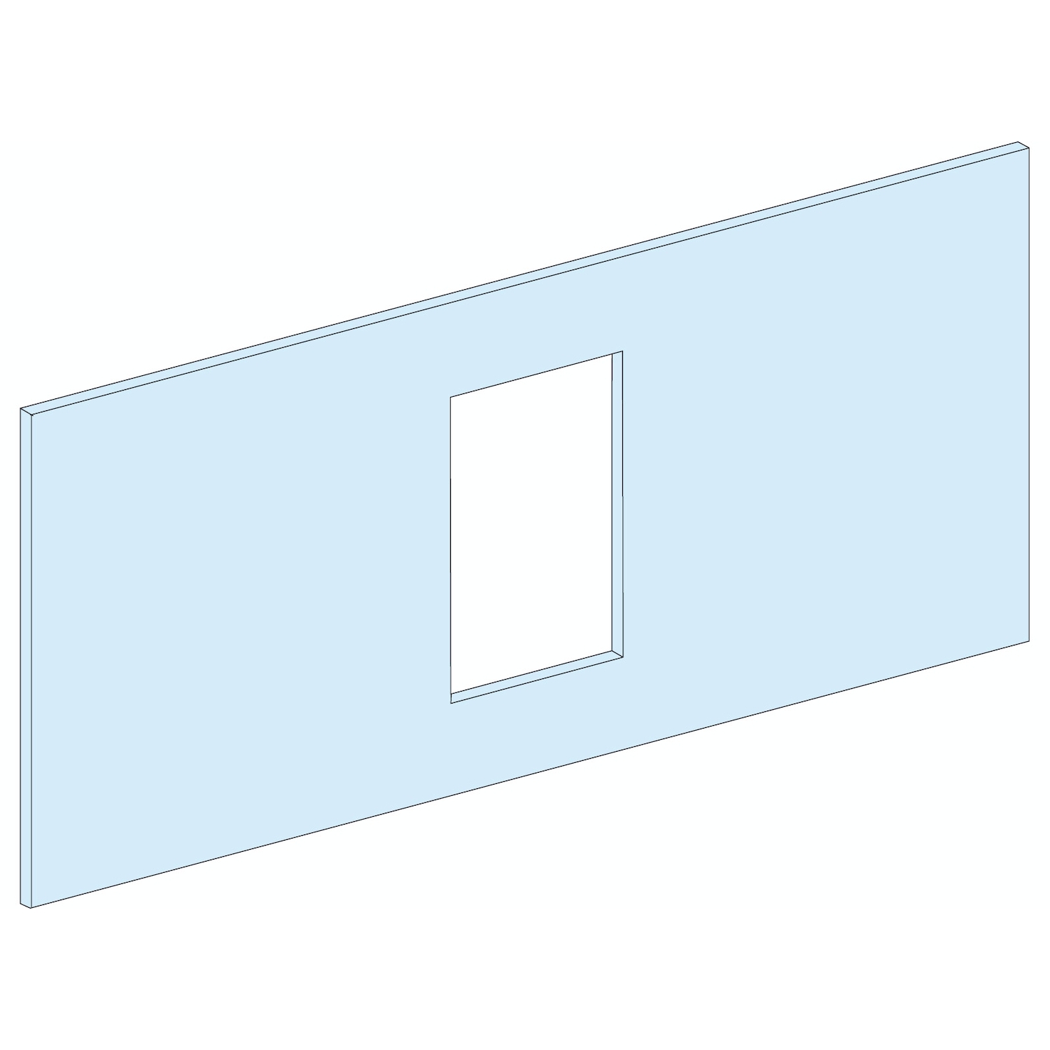Piastra frontale pretranciata per la protezione dei dispositivi di controllo adatta per armadi a parete e a pavimento PanelSeT G Compatibilità con interruttori-sezionatori 3P o 4P INS-INV320/630 Supporta vari meccanismi di controllo come una manovra rotativa frontale diretta, leva, garantendo flessibilità in installazione e funzionamento. Sono progettati per l'installazione orizzontale, per cui rappresentano la soluzione ideale per un'ampia gamma di configurazioni elettriche. È compatibile con armadi di larghezza 600+300 mm e con 6 moduli verticali L'altezza e la larghezza nominali sono rispettivamente di 300 mm e 500 mm. È fatto d'acciaio. Il colore è Bianco Β 9003 e Conforme agli standard Β e REACh. Trattamento di elettroforesi e lastra di acciaio con polvere epossidica poliestere polimerizzata a caldo.