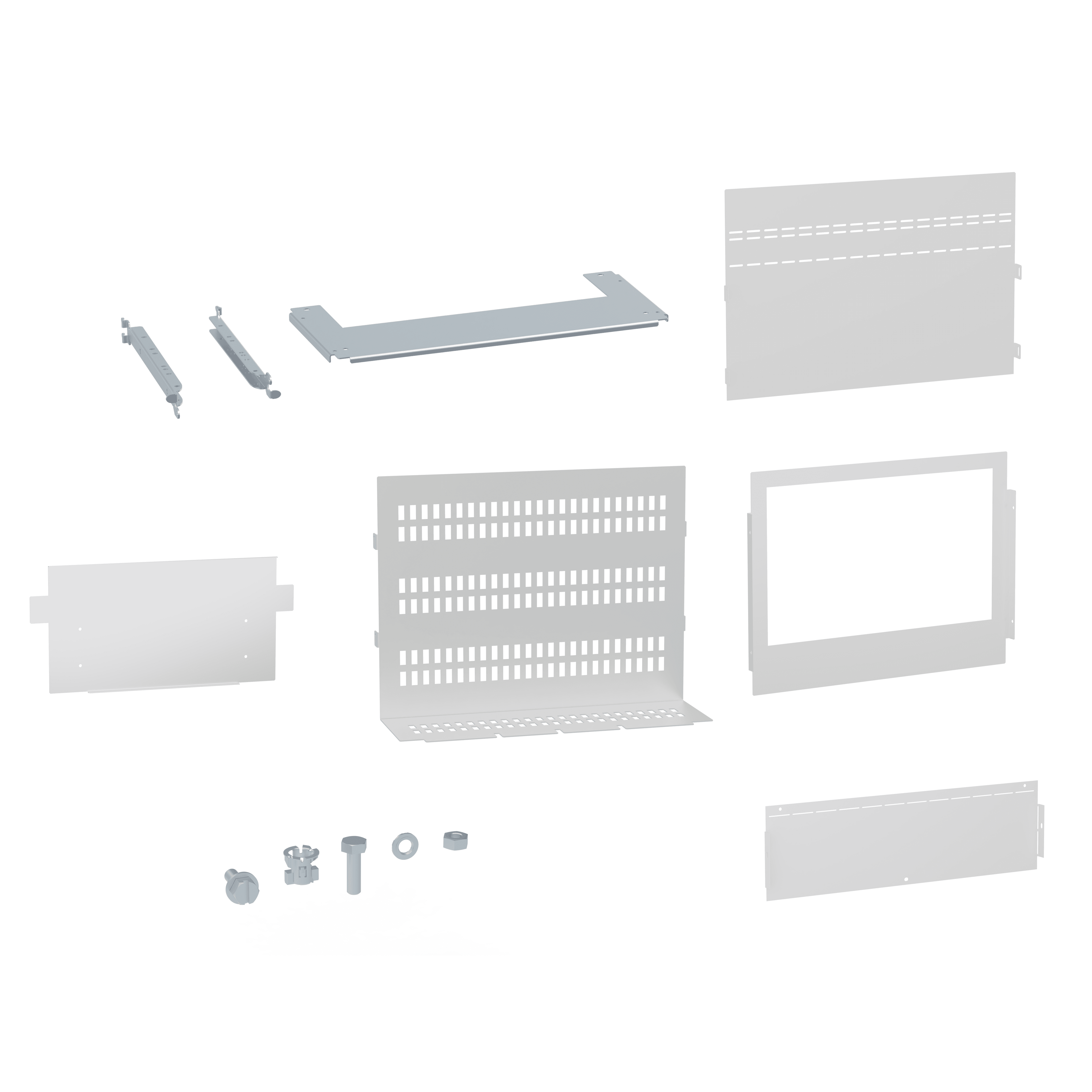 La piastra di montaggio e gli elementi di segregazione sono adatti alle unità funzionali del PrismaSeT P Compatibilità con TransferPacT 800-1600A 3P4P. Sono progettati per l'installazione verticale e sono ideali per un'ampia gamma di configurazioni elettriche. È compatibile con armadi di larghezza 650 mm. È in lamiera di acciaio e lamiera PC. Il colore è RAL 9003 ed è conforme agli standard RoHS e REACh. Trattamento di elettroforesi e lastra di acciaio con polvere epossidica poliestere polimerizzata a caldo.