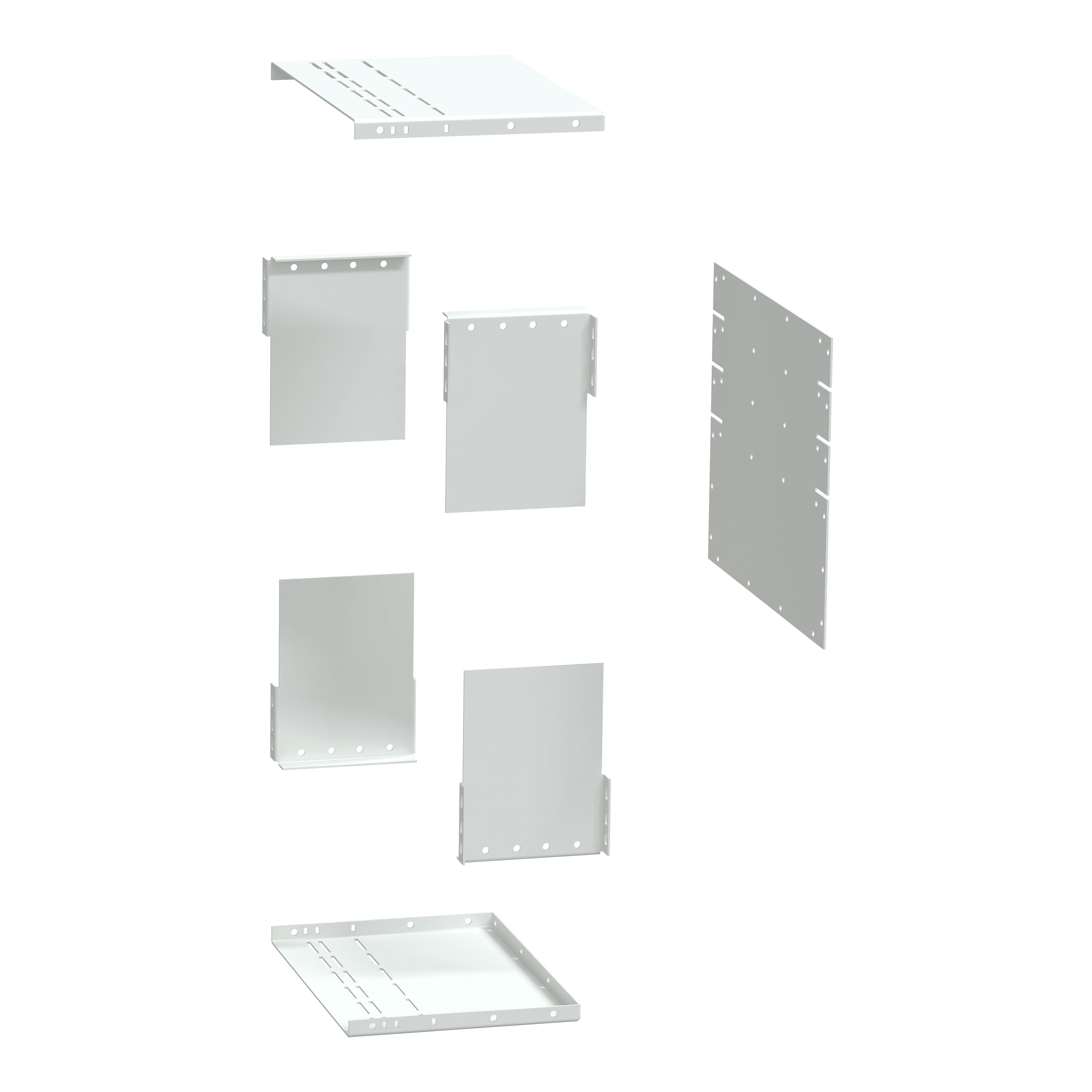 Trasferimento della connessione di forma 4b per il partizionamento PrismaSeT P. Un coperchio con passacavi in plastica che può essere facilmente tagliato lateralmente e sul fondo. Da 4 a 6 moduli per condotte da W200mm.