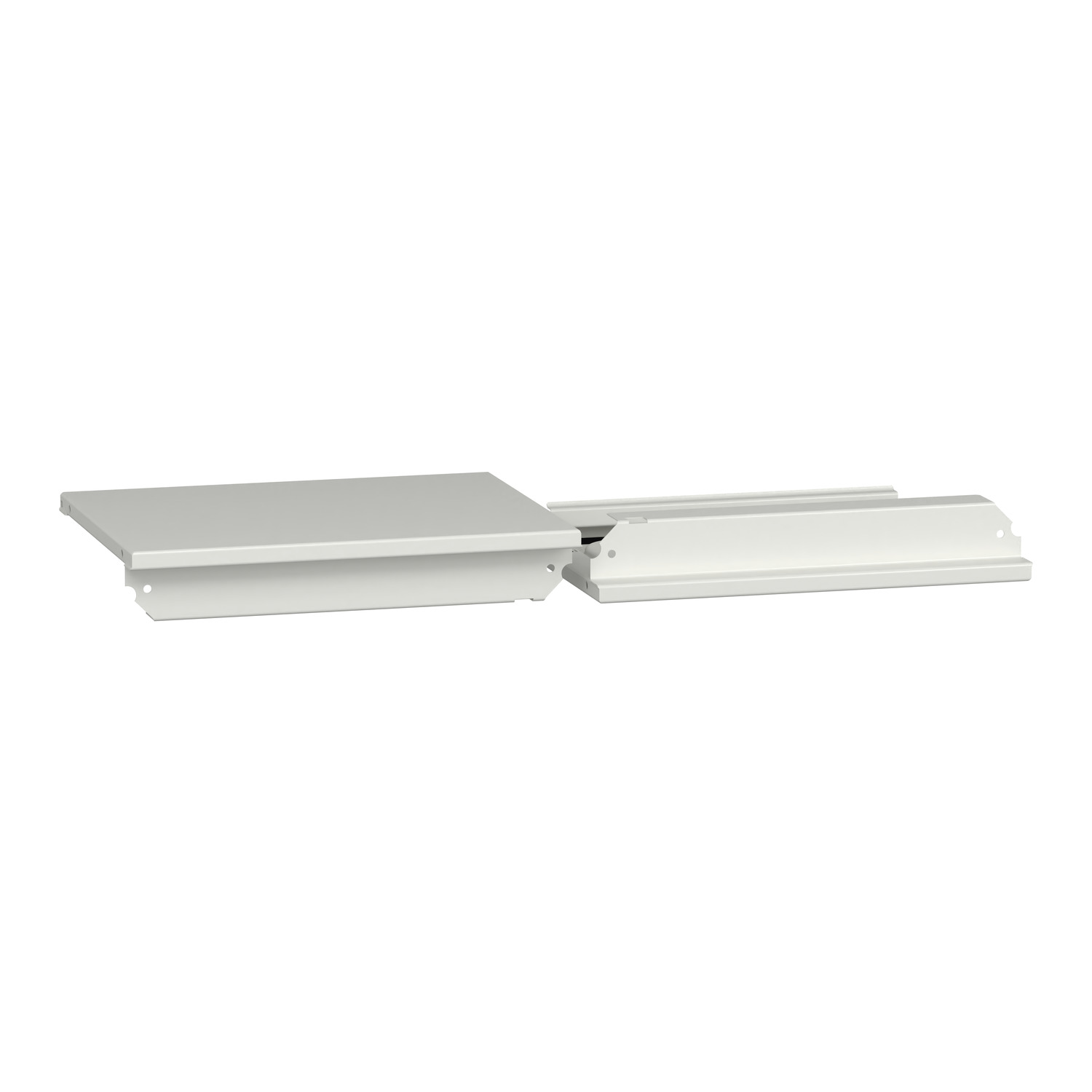 Piastra superiore/inferiore per armadi di estensione PrismaSeT G. Compatibile con armadi di espansione PrismaSeT G di larghezza pari a 300 mm. Realizzato in lamiera d’acciaio e con finitura bianca (RAL 9003). La piastra è IP55 per la protezione. Fornisceun trattamento di elettroforesi e un trattamento protettivo con polveri epossidiche di poliestere polimerizzate a caldo.