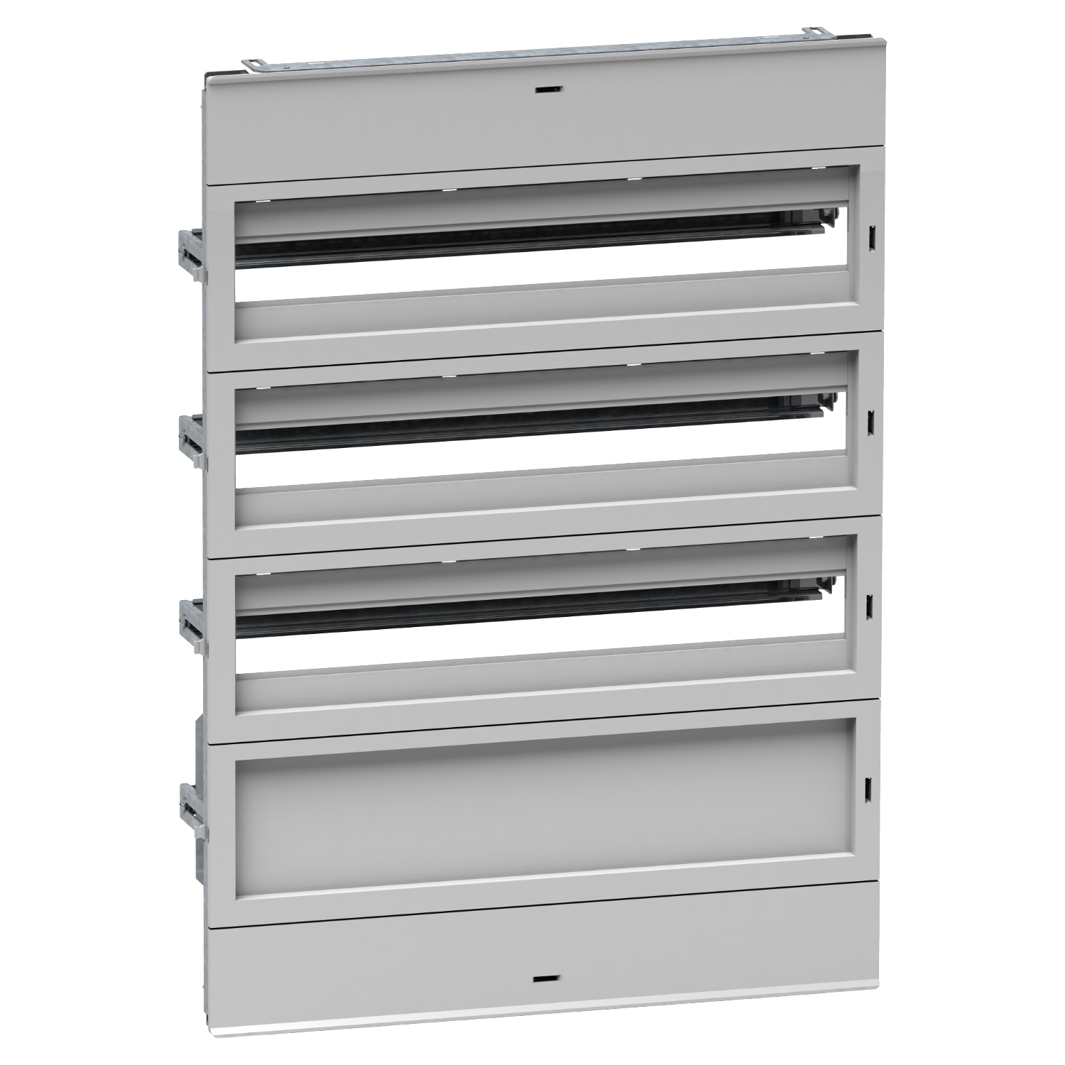 Telaio modulare per Thalassa 800x600 3x28M RAL 7035. gamma: Spacial - categoria accessori: accessorio di montaggio - applicazione: applicazione distribuzione modulare, Multifunzione - tipo di prodotto o componente: telaio - nome abbreviato: DLA - posizione montaggio: lato frontale della cassetta - compatibilità gamma: Spacial S3X, Spacial CRN, Spacial S3D, Thalassa PLM - composizione dispositivo: 1 Striscia neutro/terra 2 x 16 mm² 5 x 6 mm², 1 struttura del telaio, 3 pannelli frontali con guida DIN 35 mm, 1 pannello frontale pieno con piastra di montaggio, 2 Finitura coperchio - quantità per confezione: set da 1. Benefici: .. Applicazioni: .. Benefici: .. Applicazioni: .. Benefici: .. Applicazioni: .. Benefici: La perfetta cassetta per il dialogo uomo-macchina:, Grado di protezione: IP54, Dimensioni: da 300x300x200 a 800x600x300mm, Praticità: tubi disponibili in 4 lunghezze da 0,5 a 2metri, Robustezza: 2 taglie di tubi in lamiera estrusa: diametro 50mm o 80mm, Velocità: semplici agganci e possibilità di montare diversi accessori: porta tastiera, leggio ecc.... Applicazioni: Dialogo uomo, macchina.. Benefici: La tua cassetta ideale disegnata per risparmaire tempo, Un approccio universale con accessori dedicati alle diverse soluzioni, Un approccio ottimizzato in termini di dimensioni; per ogni applicazione la giusta dimensione, Servizio \'custom\' (fori, colori, dimensioni), Grado di protezione: IP66 con porta singola, IP55 con porta doppia, Resistenza meccanica: IK10 con porta piena, IK08 con porta trasparente, Durata: alta resistenza ai raggi UV, fissaggio cerniere con piedini in alluminio, Semplicità: porte facilmente removibili e reversibili, profilo anteriore a doppio spessore (2mm) di lamiera che permette una maggior rigidità, apertura porte 120°, 2 o 3 cerniere poste all\'interno del contenitore, 3 punti di chiusura a partire dall\'altezza 600 con un unico punto di manovra. Semplice reversibilità delle cerniere. Carico massimo: 50Kg/m2, Scelta contenitori: 1. Con o senza piastra di fondo. 2. Con porta piena o porta trasparente (anche doppia porta). 3. Dimensioni dedicate per differenti applicazioni, Scelta accessori: 1. Piastra di fondo piena, piastra di fondo serigrafata, piastra di fondo microforata, telequick, telaio guida DIN. 2. Piastre passacavi standard, con fori FL, con membrana, Particolari: porte smussate, saldature al plasma, rivestimento polvere epossidica RAL7035, Adattabile: questi contenitori possono essere forniti su richiesta con:, Colorazioni diverse dallo standard, Accessori pre-montati, Lavorazioni (forature ecc), Dimensioni non standard, Finiture differenti: metallizzazioni, cromature, Sicurezza per le persone: due punti di messa a terra saldati (sul corpo cassetta e sulla porta), Risparmio di tempo:, 4 perni saldati sul fondo per il posizionamento della piastra, Staffe a muro con fissaggio esterno, Ampia gamma di placche passacavi e accessori per entrata cavi (membrane ecc.), Ampia gamma di piastre di fondo.. Applicazioni: Automazione e controllo industriale, Cassette S3HF dedicate per EMC (10 dimensioni), Cassette di derivazione (11 dimensioni), Ampia gamma di accessori. Distribuzione elettrica, Cassette dedicate S3DM per applicazioni modulari (8 dimensioni con profondità 150), Cassette standard con possibilità di aggiungere telaio modulare. Networks elettronici e industriali, Cassette dedicate S3VDM (equipaggiate con telaio rack 19\'....