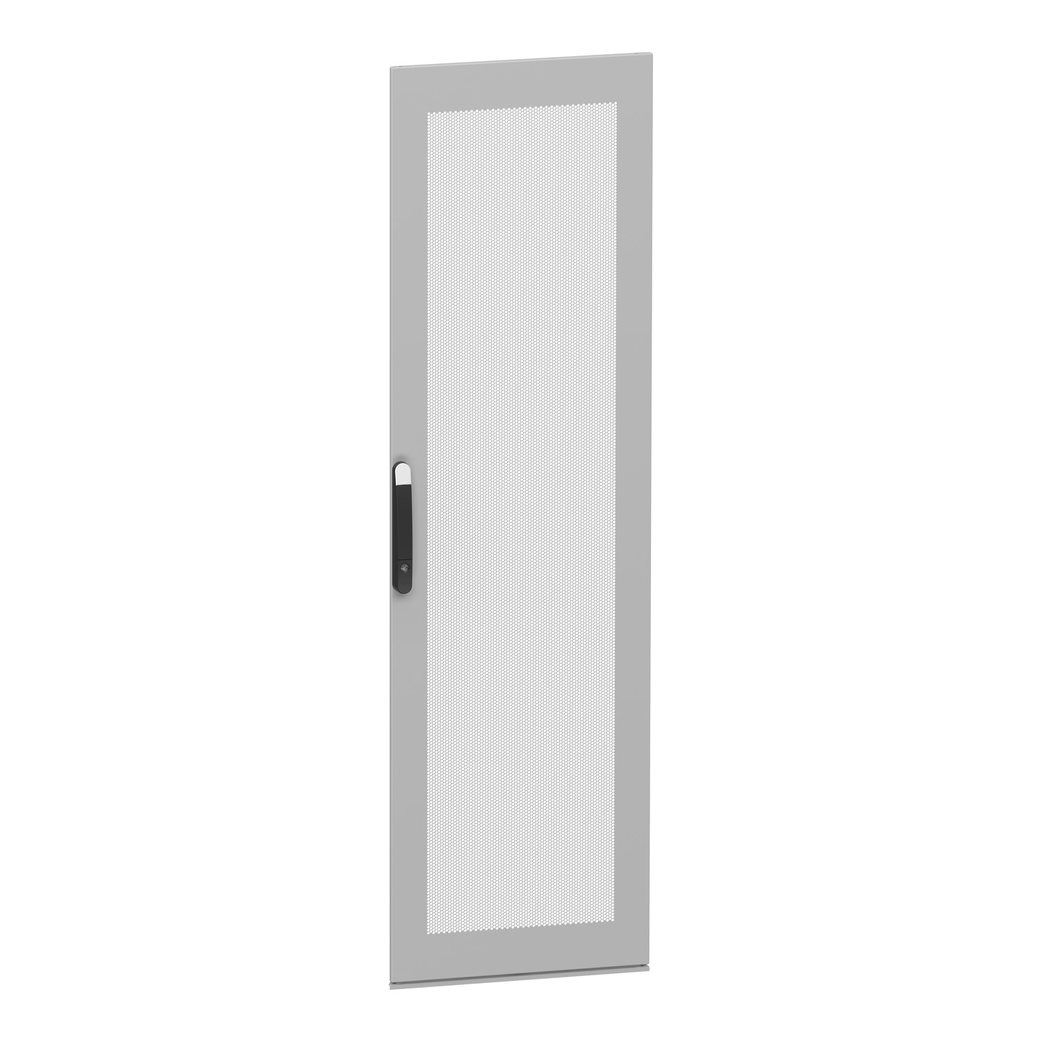 Sportello ventilato per rack da 19"progettato per garantire un'aerazione naturale dell'armadio. È progettato appositamente per assemblare un quadro elettrico SFN PanelSeT con dimensioni di 2000 mm di altezza e 600 mm di larghezza per applicazioni elettroniche. L'altezza e la larghezza nominali sono rispettivamente di 2000 mm e 600 mm. È realizzato in lamine di acciaio, mentre la maniglia è in poliammide 6 con 30% di fibra di vetro. La finitura in polvere epossi-poliestere fornisce un aspetto uniforme. Èdi colore grigio (RAL 7035). Il kit contiene lo sportello e la maniglia.