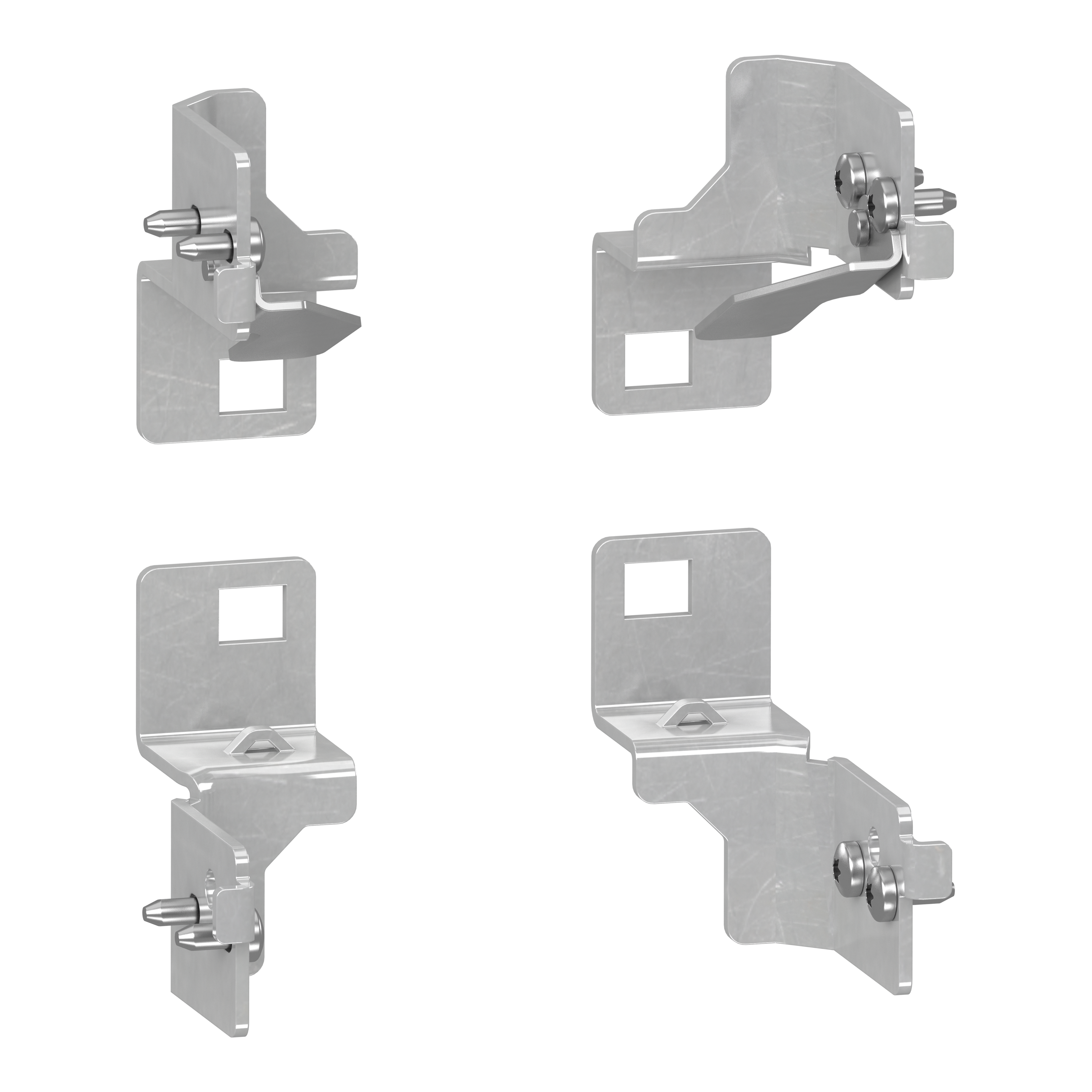 Questo set di staffe di fissaggio rapido per la piastra di montaggio è un comodo accessorio progettato specificamente per l'uso con gli armadi elettrici modulari in acciaio decarbonizzato a pavimento PanelSeT SFN. Il set è costituito da 2 staffe superiori con sistema di fissaggio rapido, due staffe inferiori e gli elementi di fissaggio necessari. Le staffe sono in acciaio e hanno una finitura superficiale zincata. Fissati alla struttura dell'armadio. Le staffe superiori assicurano il fissaggio automaticodella piastra di montaggio, garantendo che rimanga in posizione prima del fissaggio finale con le viti. Questa soluzione è in grado di sopportare fino a 600 kg di carico ammissibile ed è regolabile in profondità ogni 25 mm.