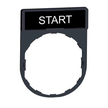 Il portaetichetta Harmony di Schneider Electric ha uno sfondo nero. È compatibile con Harmony XB4, XB5 e XB7 ed è contrassegnato con la scritta "START". Questo portaetichetta permette di personalizzare l'unità di comando con un'etichetta incisa, in lineacon il progetto approvato dal cliente.