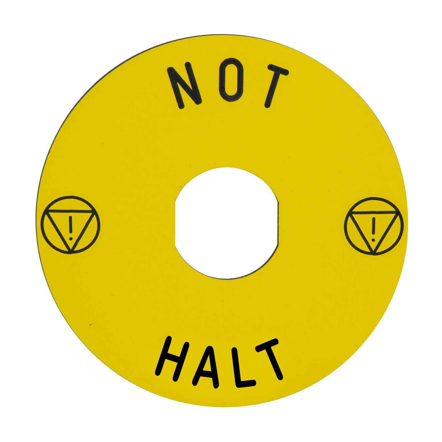L'etichetta circolare Harmony XB4 di Schneider Electric per la funzione di arresto d'emergenza ha uno sfondo giallo ed è contrassegnata con la scritta "NOT-HALT". È compatibile con Harmony XB4, XB5 e XB7. Questa etichetta circolare indica chiaramente i dispositivi per l'arresto d'emergenza. Viene fornita già incisa con una marcatura relativa al funzionamento macchina ed è compatibile con qualsiasi unità standard di arresto o spegnimento d'emergenza Harmony da 90 mm.