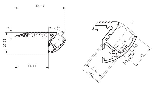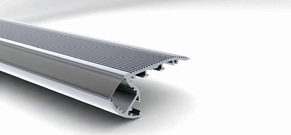 Diffusore in policarbonato di alta qualità rimovibile con un click. Diffusore calpestabile, resistente ai raggi UV. Possibilità di isolare dall’acqua l’alloggiamento della strip LED. Profilo in allumio anodizzato studiato per resistere ai calpestii continui. Disponibile nella lunghezza di 2m. Utile per illuminare le scalinate in Hotel, cinema, ristoranti. Adatto all’utilizzo con Strip LED di alta potenza (fino a 30W/m).