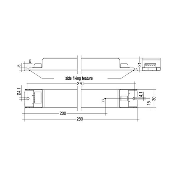 LC 100W 250-700mA flexC lp EXC - LED Driver a corrente costante per incasso in apparecchi d'illuminazione. Corrente d'uscita programmabile da 250 a 700 mA con programmer ready2mains oppure I-select 2 Plugs. Potenza d'uscita max. 100 W. Efficienza fino al 95 %. Per apparecchi illuminanti in classe d'isolamento I e II. Durata vita nominale di max. 100.000 h. 5 anni di garanzia . Copertura metallica bianca nel formato low profile (altezza 21 mm) . Tipo di protezione IP20. Per illuminazione lineare ed estensiva in uffici . Tensione in uscita 80-220 V. Potenza d'uscita 55-100 W. Dimensioni L x l x H: 280 x 30 x 21 mm.