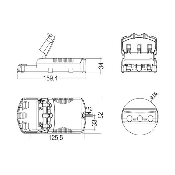 ready2mains Gateway 400VA - Interfaccia per trasmettere segnali dimming e comandi digitali ai driver LED ready2mains attraverso il cavo di rete. Facile allacciamento di pulsanti e sensori con l'interfaccia one4all: DALI, DSI, switchDIM, corridorFUNCTION.Potenza impegnata totale: max. 400 VA (max. 15 driver LED). In caso di cortocircuito e sovraccarico spegnimento e riaccensione automatica, protezione da sovratemperatura. Doppi morsetti per cablaggio passante. Montaggio veloce di fermacavo e coprimorsettiera senza l'ausilio di attrezzi. 5 anni di garanzia. 159,4 x 82 x 34 mm.