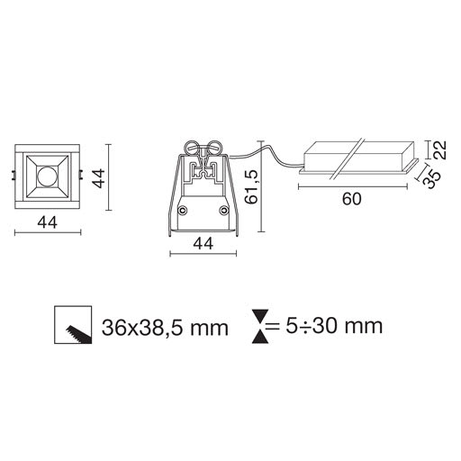 SIDE SPA - SDE3710-LBC TRAIL 1LED 36X38.5MM 3W 121LM 3000K IP20 - 3710-LBC