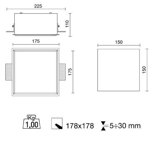 SIDE SPA - SDE4152-LBC SINDI 175 SC 178X178MM 15W 1359LM 3000K - 4152-LBC