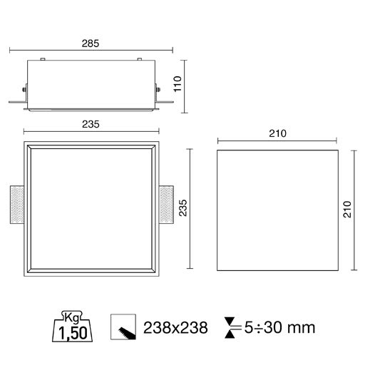 SIDE SPA - SDE4162-LBC SINDI 240 SC 238X238MM 22.4W 1456LM 3000 - 4162-LBC