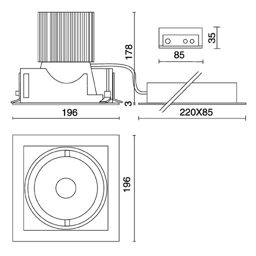 SIDE SPA - SDE70500LBC60-DA MATRIX POWER DALI 1 LED 179X179MM 27W 34 - 70500LBC60-DA