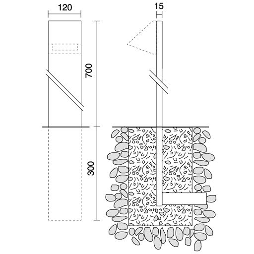 installazione: A Pavimento/Terra. corpo / struttura: Corpo in estruso di alluminio. verniciatura: Verniciatura in polveri di poliestere con trattamento speciale per esterni (sabbiatura, decappaggio, n.3 lavaggi, fluorzirconatura, fondo in polveri epossidiche e finitura di superficie in polvere di poliestere). colore: Nero. filo incandescente: 850 °C.