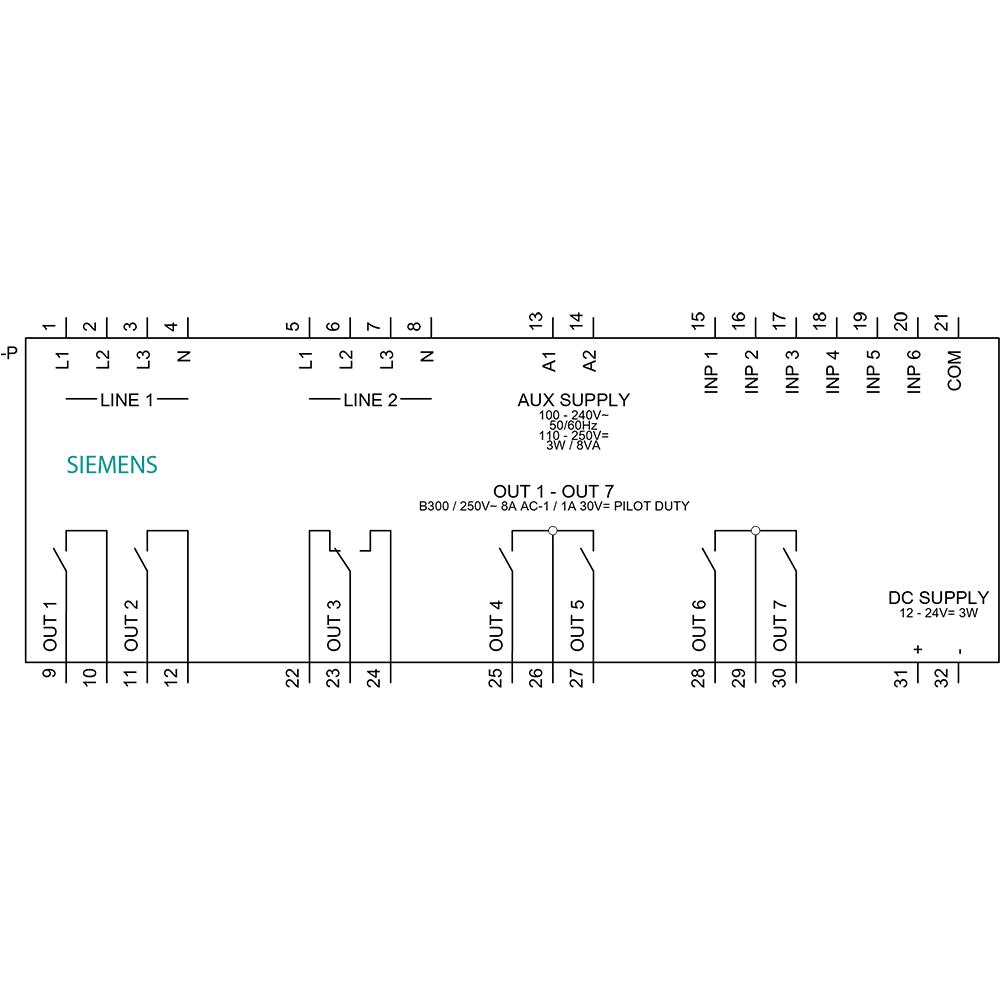 SENTRON 3KC ATC6300; LCD; 144x144 mm; commutatore automatico di rete per comando di MCCB, ACB, LBS; per trasferimento del carico tra rete principale e rete di riserva; apparecchio da incasso nel pannello di comando; Un AC 100 ... 240 V 50/60 Hz, DC 110 ... 250 V; Un DC 12 ... 24 V tensione nominale Ue: AC 100 ... 480 V 50/60 Hz; connessione a morsetto ampliabilità con max. 2 moduli aggiuntivi accessori per commutatore di rete SENTRON 3KC9 per unelevata flessibilità. Grazie a unampia gamma di accessori, icommutatori di rete possono essere utilizzati per diverse esigenze ed essere installati successivamente in qualsiasi momento. Sicurezza integrale per utenti e sistemi.