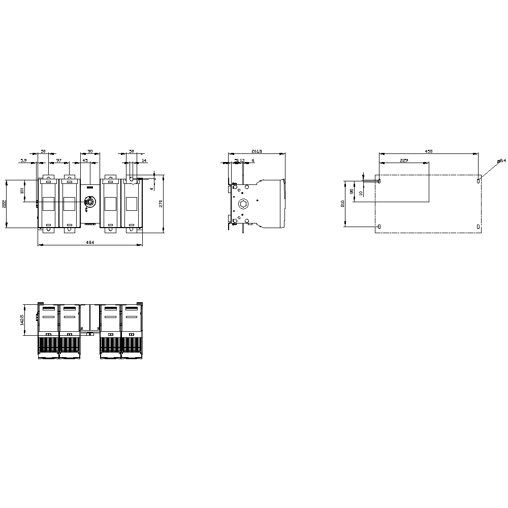 SIEMENS - SIE3KF54630MF11 SEZ FUS 4P 630A NH3 COM CENT W/O MANIGL - 3KF54630MF11