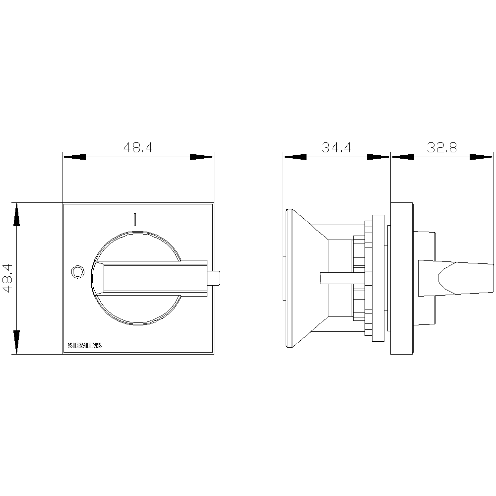 selettore, nero 48 x 48 mm frontale fissaggio su foro centrale 22,5 mm con giunto per albero 6x6 mm, accessori per sezionatore sottocarico 3LD3 Interruttori principali e di OFF di emergenza SENTRON 3LD3 per la disinserzione sicura dei carichi in numerosisettori, ad es. per motori trifase, impianti di climatizzazione e ventilazione, quadri di comando e elettrici, in particolare per piccole macchine quali segatrici, compressori, pompe, betoniere, trapani, fresatrici o macchine per la lavorazione del legno. Struttura modulare, montaggio semplice e rapido di blocchetti di contatti ausiliari, morsetto PE/N o 4º polo. Ottimale sezionamento dalla rete da 16 A a 63 A grazie alla lucchettabilità del comando rotativo. Versatilità dimpiego grazie alle approvazioniinternazionali. Una grandezza costruttiva meccanica per cinque grandezze costruttive elettriche. Gli interruttori principali e gli interruttori di OFF di emergenza 3LD sono disponibili in molteplici varianti per il fissaggio frontale, su piastra di montaggio, su guida DIN o montaggio in quadro di distribuzione, a scelta con comando rotativo bloccoporta diretto o rinviato. I 3LD2 sono disponibili anche con varianti per applicazioni in corrente continua. Interruttori principali e di OFF di emergenza 3LD - Sicurezza integrale per utenti e sistemi.