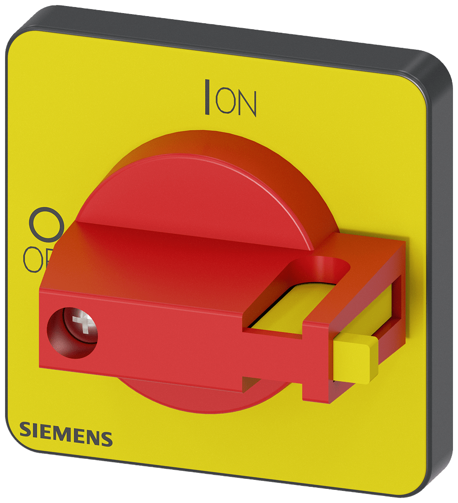 selettore, rosso/giallo 48x48 mm fissaggio frontale fissaggio su foro centrale 22,5 mm per albero 6x6 mm, accessori per sezionatore sottocarico 3LD3 Interruttori principali e di OFF di emergenza SENTRON 3LD3 per la disinserzione sicura dei carichi in numerosi settori, ad es. per motori trifase, impianti di climatizzazione e ventilazione, quadri di comando e elettrici, in particolare per piccole macchine quali segatrici, compressori, pompe, betoniere, trapani, fresatrici o macchine per la lavorazione del legno. Struttura modulare, montaggio semplice e rapido di blocchetti di contatti ausiliari, morsetto PE/N o 4º polo. Ottimale sezionamento dalla rete da 16 A a 63 A grazie alla lucchettabilità del comando rotativo. Versatilità dimpiego grazie alle approvazioni internazionali. Una grandezza costruttiva meccanica per cinque grandezze costruttive elettriche. Gli interruttori principali e gli interruttori di OFF di emergenza 3LD sono disponibili in molteplici varianti per il fissaggio frontale, su piastra di montaggio, su guida DIN o montaggio in quadro di distribuzione, a scelta con comando rotativo bloccoporta diretto o rinviato. I 3LD2 sono disponibili anche con varianti per applicazioni in corrente continua. Interruttori principali e di OFF di emergenza 3LD - Sicurezza integrale per utenti e sistemi.