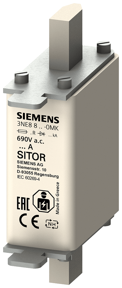 Cartuccia fusibile SITOR, con contatti a coltello, NH000, In: 25 A, gR, Un AC: 690 V, Un DC: 440 V, segnalatore di intervento frontale Cartuccia fusibile SITOR SENTRON 3NE8 per fusibili per semiconduttori SITOR. Quale parte integrante importante dei componenti di protezione SENTRON per linstallazione elettrica, il sistema di fusibili SITOR offre una protezione efficace per le persone, gli apparecchi e gli impianti grazie alla disinserzione sicura in caso di sovraccarico e cortocircuito. Grazie alle loro caratteristiche di disinserzione extrarapida, rispetto ai fusibili NH convenzionali, e alla loro corrispondenza ottimale alla curva caratteristica, anche i semiconduttori di potenza sono protetti in modo affidabile. Dispositivi di protezione SENTRON - Unascelta sicura.