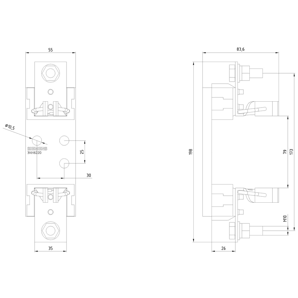 SIEMENS - SIE3NH6220 BASE 1P NH1 250A/690V (1000V)CERAM.D.SB. - 3NH6220