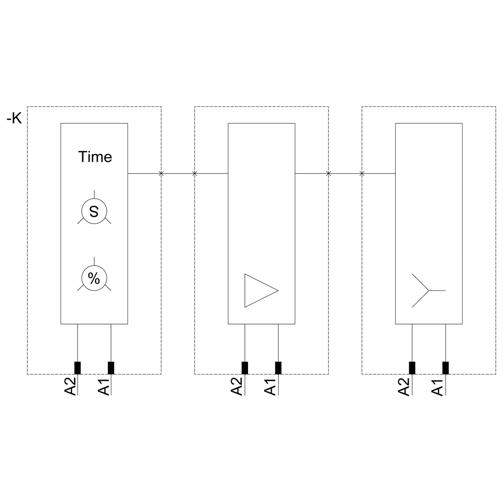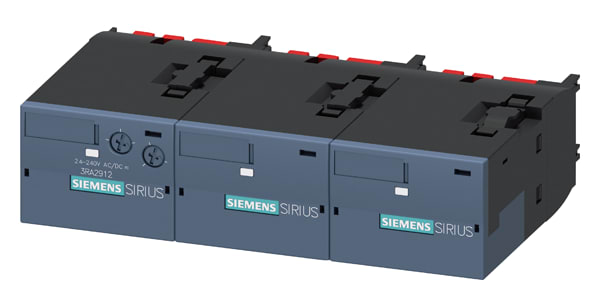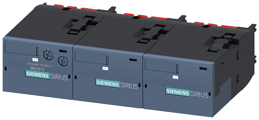 modulo funzionale stella-triangolo, composto da un modulo base e due moduli accoppiatori, intervallo di tempo 0,05...60 s, AC/DC 24...240 V, 50/60 Hz, varistore per lo smorzamento delle bobine del contattore integrato, per contattori 3RT20 modulo funzionale SIRIUS 3RA28 per avviamento stella-triangolo per il montaggio su contattori 3RT2 e contattori ausiliari 3RH2, ad es. per lavviamento di motori, ventole e ventilatori. Montaggio semplice e senza attrezzi di avviatori stella-triangolo, inclusi la funzione di temporizzazione e linterblocco elettrico, senza cablaggio addizionale. Si escludono così gli errori di cablaggio e si riducono i costi di collaudo. Grazie al montaggio frontale agli apparecchi si risparmia posto sulla guida DIN. Una circuitazione diprotezione aggiuntiva non è necessaria. Il circuito preferenziale automatico riduce i picchi di corrente. Gli apparecchi sono impiegabili in tutto il mondo grazie ad approvazioni internazionali (ad es. IEC, CCC, UL/CSA). I moduli funzionali sono fornibili per contattori 3RT2 e contattori ausiliari 3RH2 nelle grandezze costruttive da S00 a S3. Disponibili con un ampio campo di tensione AC/DC 24-240 V, uscite a scelta 1 NO + 1 NC o 1 CO e con morsetti a vite o a molla. Per i moduli funzionali sono disponibili kit di cablaggio e una copertura piombabile. Relè SIRIUS - un programma per ogni evenienza.