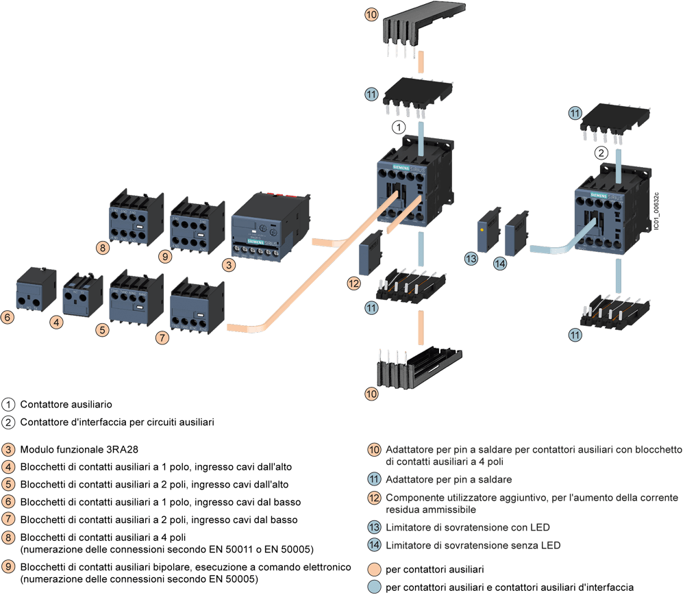 Numero di contatti ausiliari, contatti di riposo, a commutazione ritardata: