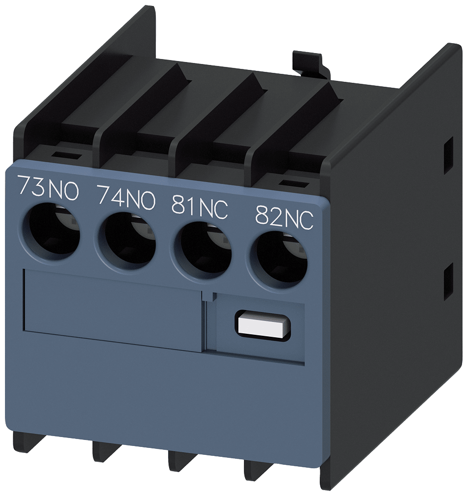 blocchetto di contatti ausiliari, sul lato frontale, 1 NO + 1 NC, 73/74, 81/82, via di corrente: 1 NO, 1 NC, ingresso cavi dallalto, morsetti a vite, per contattori 3RT2 e contattori ausiliari 3RH2 contatto ausiliario SIRIUS 3RH29 per lampliamento dei contatti ausiliari nel circuito di comando. I blocchetti di contatti ausiliari frontali 3RH29 possono essere montati senza attrezzi indipendentemente dalla grandezza costruttiva sui contattori 3RT2 e sui contattori ausiliari 3RH2. I blocchetti di contatti ausiliari 3RH19/3RH29 sono fornibili come varianti per il montaggio frontale o laterale, con fino a quattro contatti NO con commutazione istantanea o fino a due contatti NO e NC anticipati. I blocchetti di contatti ausiliari possono essere in esecuzione con elementi di contatto a guida forzata in contattori ausiliari 3RH o anche come contatti speculari in contattori di potenza 3RT. Essi sono sempre fornibili con morsetti a vite e morsetti a molla. Semplice, efficiente, sempre attuale - il sistema modulare SIRIUS.