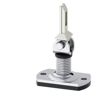 Azionatore separato azionatore radiale universale con linguetta di azionamento ruotata di 90 ° per interruttori di posizione con blocco di ritenuta 3SE5312/3SE5322 e AS-i 3SF13 e interruttore di posizione con elemento di comando separato 3SE51/3SE52 e AS-i 3SF11/3SF12 attuatore SIRIUS 3SE5 per il rilevamento di posizione di parti di macchina e per la sorveglianza della posizione di dispositivi di protezione. La struttura modulare degli interruttori di posizione 3SE5 consente una molteplicità di varianti con un numero ridotto di tipi da magazzino. Lampia varietà di connettori e rotelle consente di soddisfare tutte le esigenze nella quotidianità industriale. LED segnalano lo stato attuale dellapparecchio. Grazie alla tecnica di collegamento rapida i tempi di cablaggio risultano notevolmente ridotti. Punti di commutazione e fissaggio secondo EN 50047 e EN 50041. Gli apparecchi hanno omologazioni internazionali (IEC, UL). Con le corrispondenti configurazioni di interruttore si possono soddisfare i massimi requisiti di sicurezza secondo PL e o SIL 3. Lelettronica ASIsafe integrata comporta un ridotto assorbimento di corrente. Sono disponibili diverse grandezze di custodia, con diversi contatti, in plastica o in metallo o in forma costruttiva compatta. Alcune varianti sono disponibili opzionalmente con visualizzazione di stato a LED e connettore M12. La serie 3SF1 con collegamento diretto al sistema di bus AS-Interface completa la gamma di prodotti. Come accessori sono disponibili, a seconda dellesecuzione, testine di comando e connettori nonché ulteriori accessori di montaggio/collegamento. Safety is a SIRIUS business.
