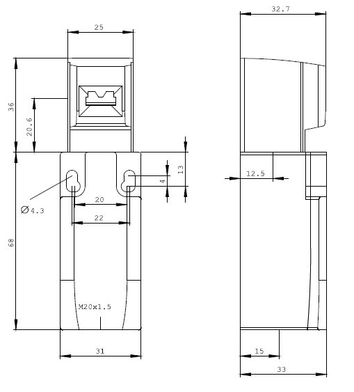 SIEMENS - SIE3SE52320RV40 Interruttore di posizione di sicurezza con azionatore separato, custodia in plastica, 31 mm