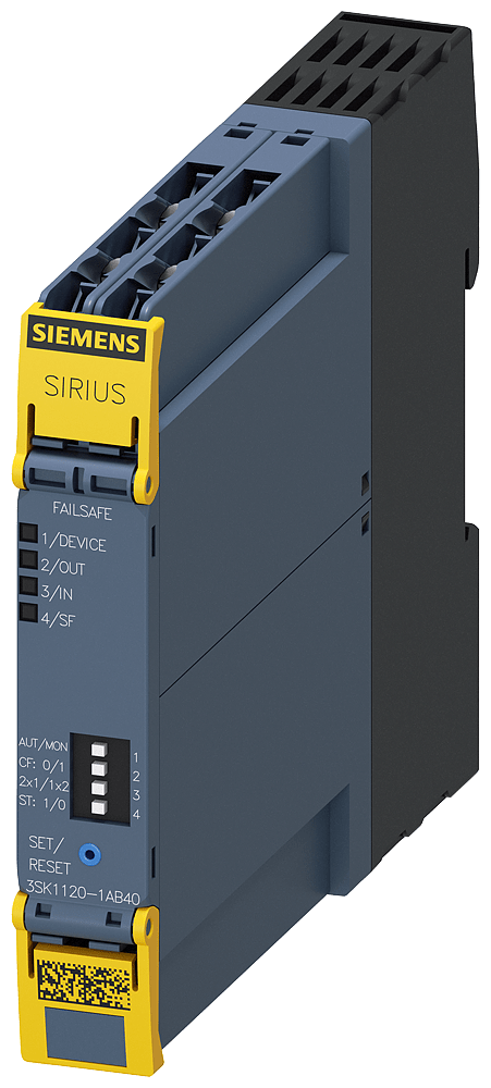 dispositivo di sicurezza SIRIUS apparecchio di base serie Advanced circuiti di abilitazione elettronici 1 circuito di abilitazione 0,5 A Us = DC 24 V morsetto a vite apparecchio di manovra di sicurezza SIRIUS 3SK1 per applicazioni di sicurezza autonome. I moduli di base Advanced 3SK112 consentono scopi dimpiego universali grazie alla multifunzionalità e alle possibilità di ampliamento flessibili. Essi formano una piattaforma di sistema che consente la realizzazione di funzioni di sicurezza complesse e con una molteplicità di sensori e uscite. Con i connettori di apparecchiatura si possono ampliare in modo affidabile e semplice il numero degli ingressi e anche delle uscite sicure senza onere di cablaggio tra gli apparecchi. Mediante i connettori di apparecchiatura si possono integrare direttamente gli azionamenti fino a 3 kW con gli avviatori motore fail-safe SIRIUS 3SK11 nel sistema 3SK. Tutti i componenti dispongono di omologazioni internazionali e sono pertanto adatti allesportazione per un impiego globale. Gli apparecchi sono fornibili con uscite a relè o statiche, con azionamento istantaneo o ritardato, con diversi campi di temporizzazione nonché con morsetti a vite o a molla (push-in). Molteplici accessori come ad es. coperture piombabili, piastrinedi fissaggio per montaggio a parete o pin di codifica facilitano lutilizzo dei prodotti. Si possono impiegare i moduli di ampliamento ingressi e uscite nonché un proprio alimentatore senza onere di cablaggio addizionale, utilizzando i connettori di apparecchiatura. I dispositivi di sicurezza 3SK sostituiscono la comprovata serie costruttiva 3TK28. Safety is a SIRIUS business.