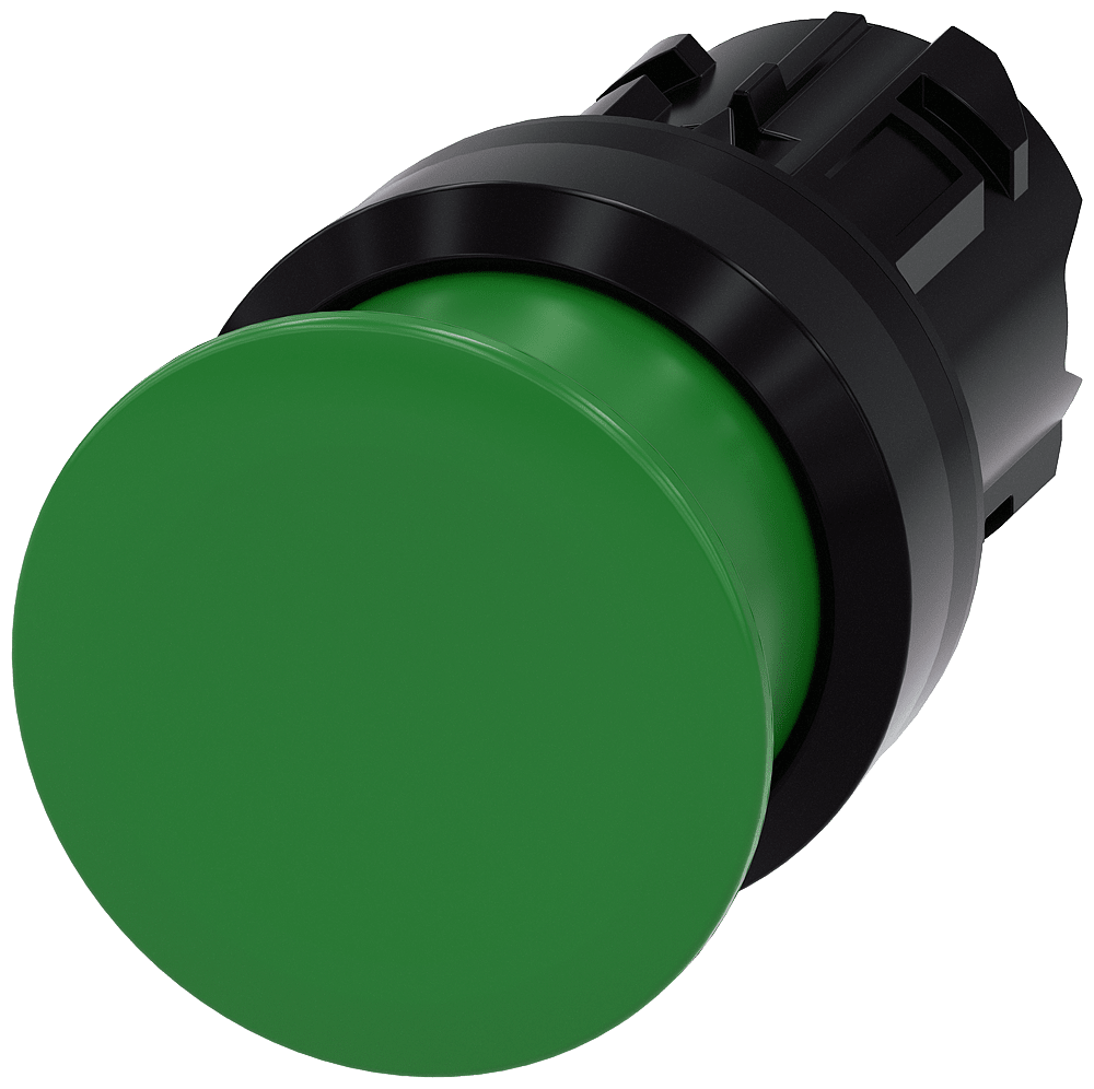pulsante a fungo, 22 mm, rotondo, in plastica, verde, 30 mm, ad impulso Pulsante a fungo SIRIUS ACT con operatore grande per lazionamento comodo con tutta la mano. Siemens offre, sotto il nome commerciale SIRIUS ACT, un portfolio esclusivo di dispositividi comando e segnalazione con omologazioni di prodotto per il mercato mondiale in tre moderne serie di design in robusto metallo puro e plastica pregiata.Linnovativo concetto di innesto a scatto semplifica talmente il montaggio che per eseguirlo basta una sola mano e non servono attrezzi speciali. Per i fori di montaggio sono sufficienti semplici fori non scanalati, essendo già integrata una protezione antirotazione al 100 %.Grazie al grado di protezione elevato i robusti apparecchi sono adatti allimpiego industriale e in ambiente esterno. È persino possibile la pulizia con getto ad alta pressione. Né polvere, né oli, né liscivia possono comprometterne il funzionamento affidabile.Oltre che con il cablaggio standard, gli apparecchi possono essere collegati al controllore anche tramite PROFINET, AS-Interface oppure IO-Link. Potete così ridurre il vostro onere di cablaggio, minimizzare le fonti di errore e ottenere maggiore flessibilità.Il configuratore online grafico supporta in modo confortevole la sceltae lordinazione di singoli apparecchi, pulsantiere e iscrizioni. È disponibile una documentazione completa (ad es. manuale, dati 3D, schema di collegamento). Esecuzioni fornibili: diametro del fungo di 30/40/60 mm, più colori, luminoso/non luminoso, comando permanente/ad impulso, sblocco a trazione/a rotazione. Avvertenza: Apparecchio singolo, supporti e moduli devono essere ordinati separatamente. SIRIUS ACT - Performance in Action nel comando e nella segnalazione. Semplici da montare, altamente performanti, semplicemente perfetti.