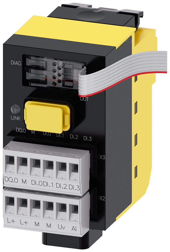 SIRIUS ACT con PROFINET: modulo dinterfaccia fail-safe con 4 DI, 1 DQ (DC 24 V), 1 AI (risoluzione A/D da 12 bit), DC 24 V, morsetti a vite, fissaggio su piastra frontale, da 1 a 20 moduli terminali collegabili Modulo dinterfaccia failsafe per PROFINET SIRIUS ACT per il collegamento degli elementi di comando e segnalazione tramite PROFINET. Siemens offre, sotto il nome commerciale SIRIUS ACT, un portfolio esclusivo di dispositivi di comando e segnalazione con omologazioni di prodotto per il mercato mondiale in tre moderne serie di design in robusto metallo puro e plastica pregiata.Linnovativo concetto di innesto a scatto semplifica talmente il montaggio che per eseguirlo basta una sola mano e non servono attrezzi speciali. Per i fori di montaggio sono sufficienti semplici fori non scanalati, essendo già integrata una protezione antirotazione al 100 %.Grazie al grado di protezione elevato i robusti apparecchi sono adatti allimpiego industriale e in ambiente esterno. È persino possibile la pulizia con getto ad alta pressione. Né polvere, né oli, né liscivia possono comprometterne il funzionamento affidabile.Oltre che con il cablaggio standard, gli apparecchi possono essere collegati al controllore anche tramite PROFINET, AS-Interface oppure IO-Link. Potetecosì ridurre il vostro onere di cablaggio, minimizzare le fonti di errore e ottenere maggiore flessibilità.Il configuratore online grafico supporta in modo confortevole la scelta e lordinazione di singoli apparecchi, pulsantiere e iscrizioni. È disponibile una documentazione completa (ad es. manuale, dati 3D, schema di collegamento). Esecuzioni fornibili: come modulo dinterfaccia fail-safe e standard, con morsetti a vite o a molla. SIRIUS ACT - Performance in Action nel comando e nella segnalazione. Semplici da montare, altamente performanti, semplicemente perfetti.